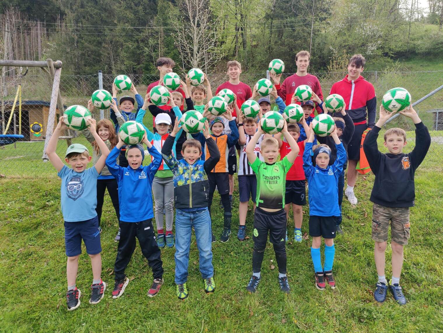 Unter der Leitung der Trainer aus der BHAK Bad Ischl bereiten sich die Volksschülerinnen aus Reindlmühl auf die Fußball-Weltmeisterschaft vor.